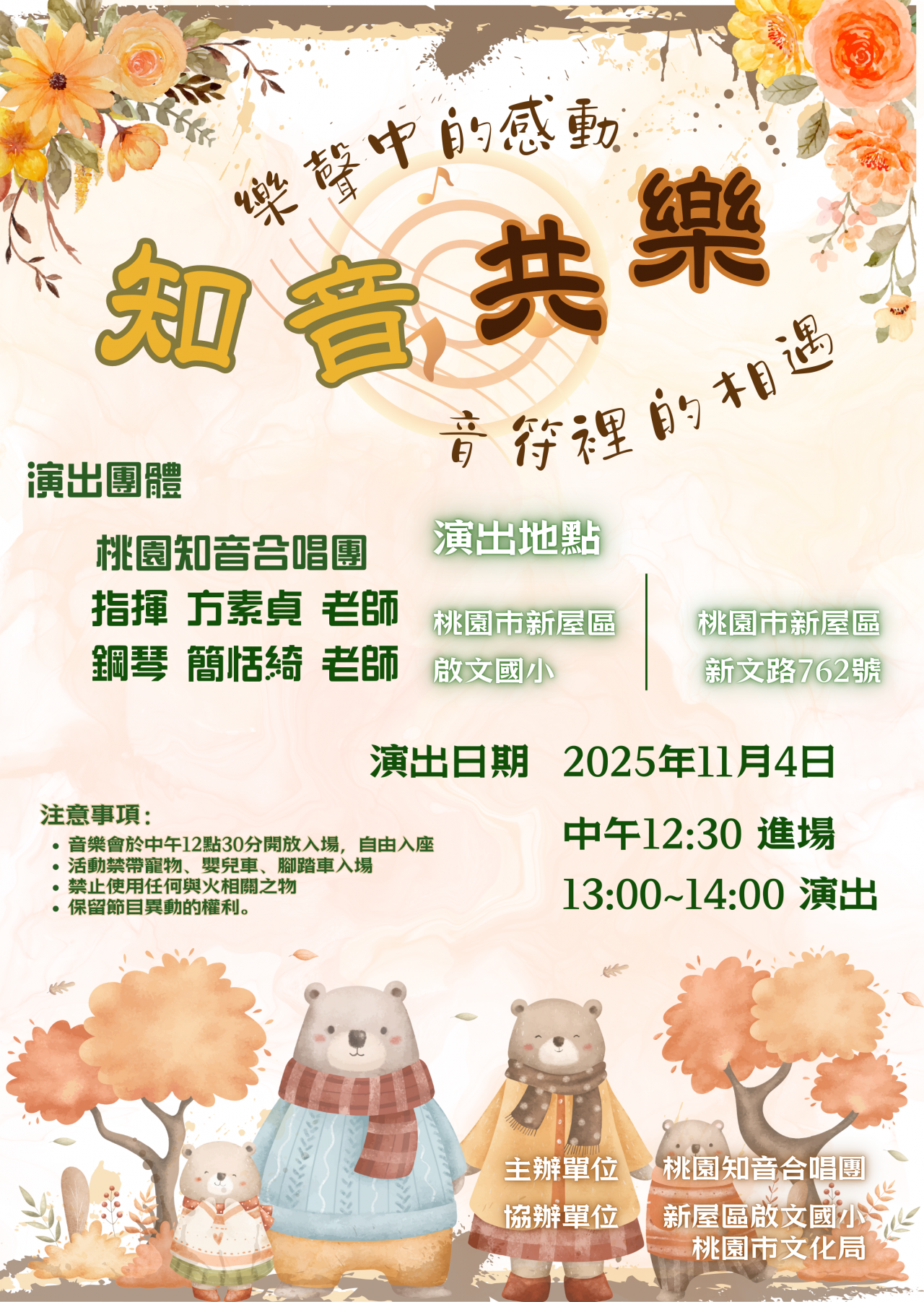 誠摯邀請啟文國小家長、社區民眾一起在11/4,13:00,一起聆聽客家歌謠等動人歌曲~