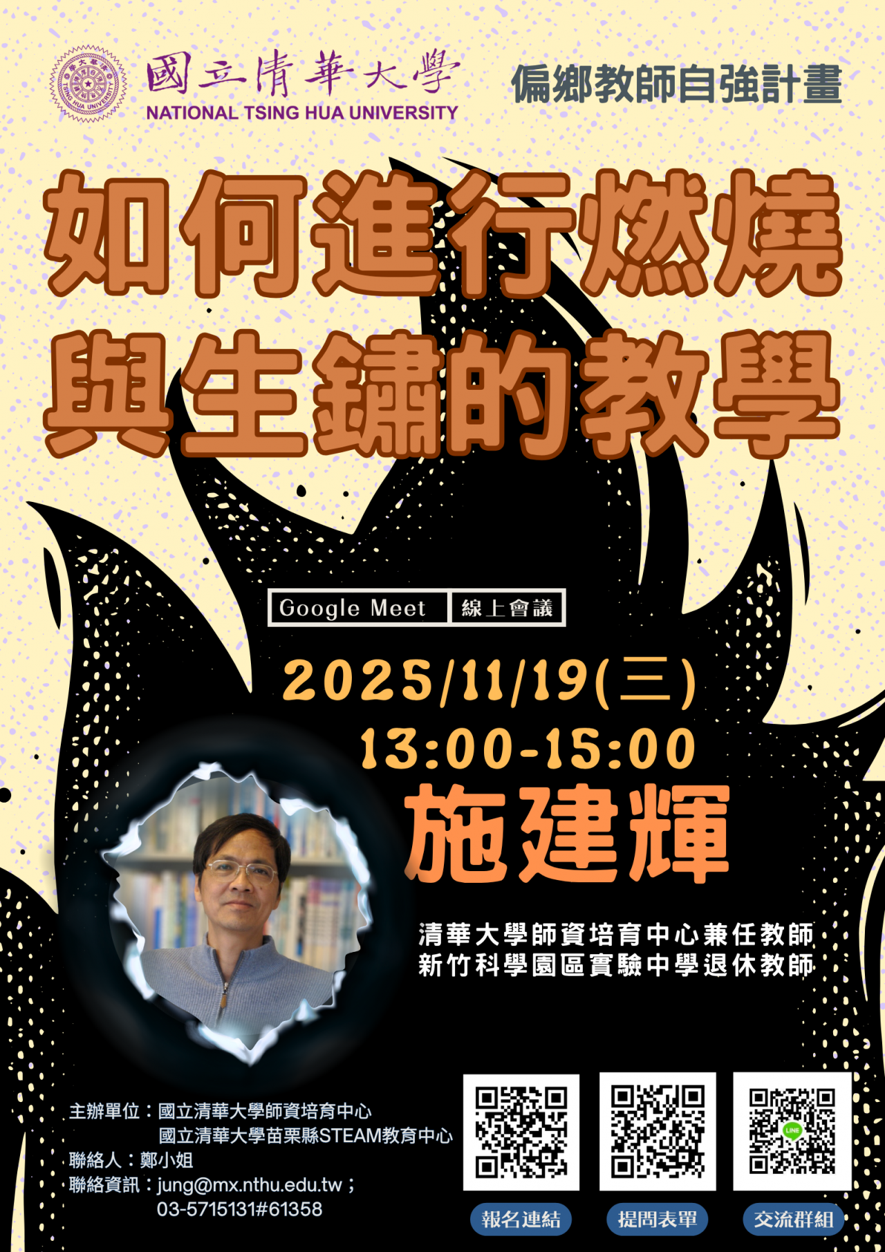 四、    為增進參與本計畫教師之交流及對於教材教法和學科知識之提問討論,本校亦建立Line群組及開設提問表單(如海報QR Code),歡迎自由加入及提問。