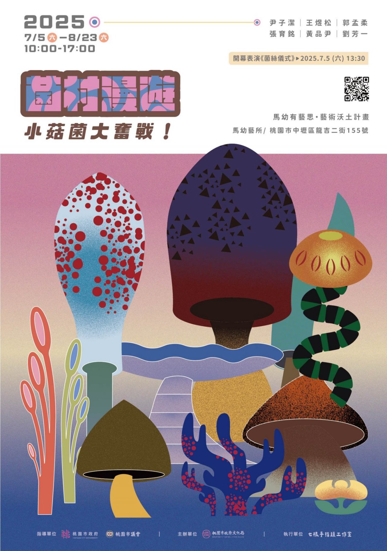 本局為推動眷村文史保存及藝術與人文教育自幼扎根,推廣兒童及親子友善之藝文活動,特於馬祖新村眷村文創園區「馬幼藝所」辦理分期藝術駐村計畫,本(114)年度第二期藝術進駐舉辦「菌村漫遊」藝術教育展及藝術家共創工作坊系列活動。 |